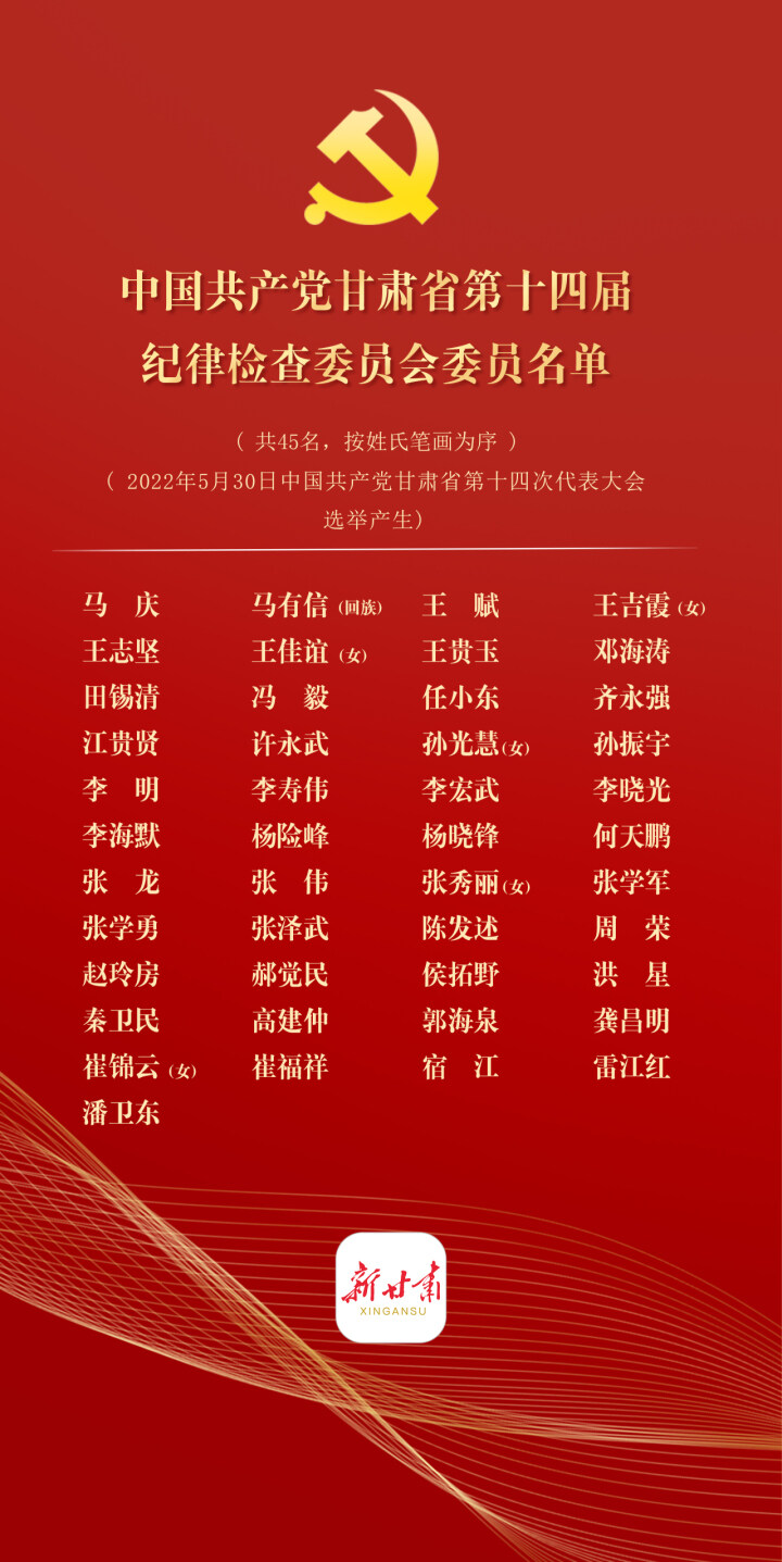 中國共產(chǎn)黨甘肅省第十四屆紀(jì)律檢查委員會(huì)委員名單