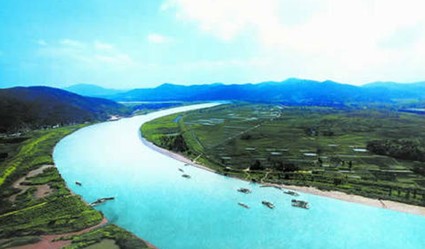 曹娥江風(fēng)景。據(jù)說波濤洶涌的曹娥江水在流經(jīng)曹娥廟時(shí)總是平靜的。當(dāng)?shù)匕傩照J(rèn)為,那是因?yàn)榻杂X愧對(duì)孝女曹娥。