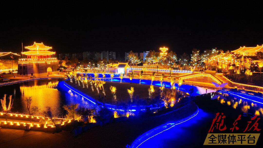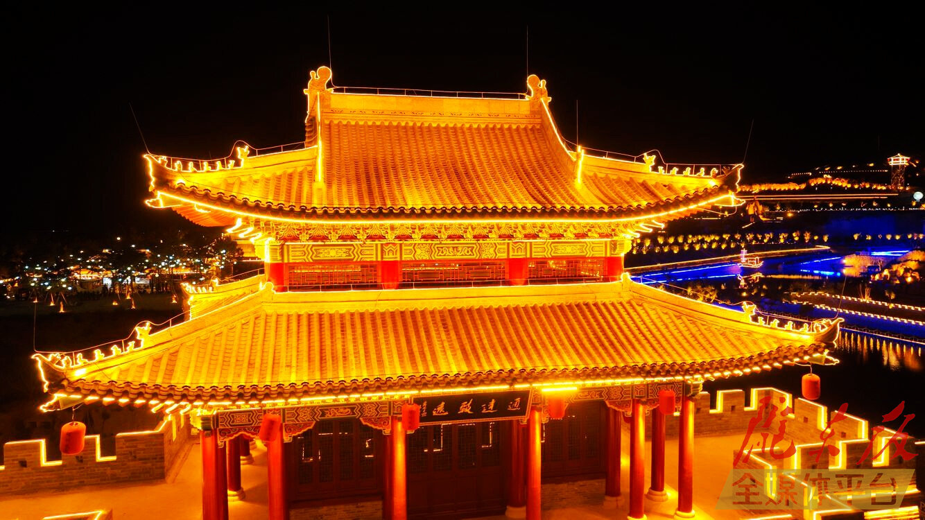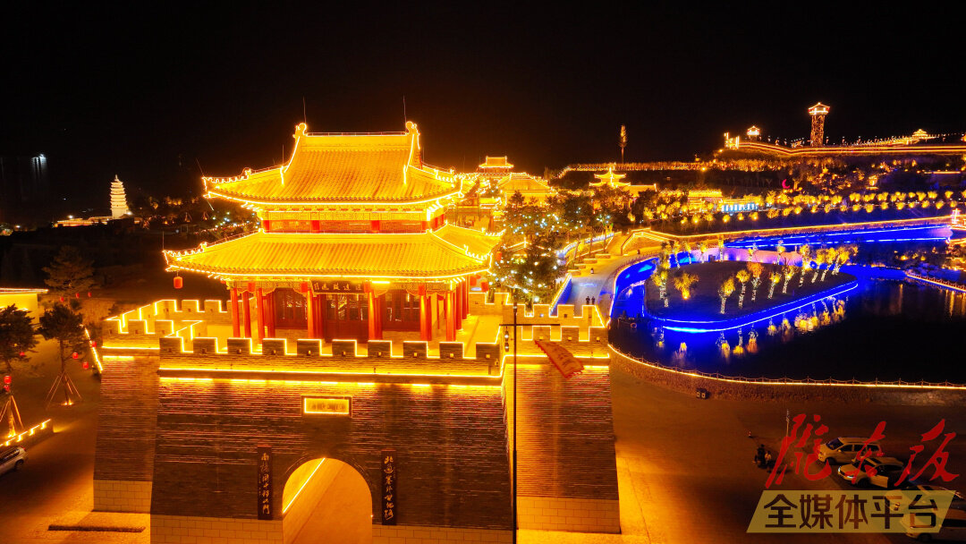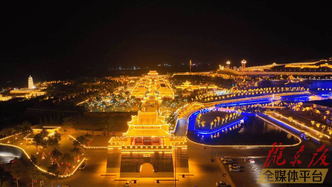 夜幕降臨,華燈初上,環(huán)州故城燈火通明,璀璨輝煌,宛若天宮仙境。6月2日,攝影師用無人機(jī)航拍了環(huán)州故城各個角度的夜景盛況。