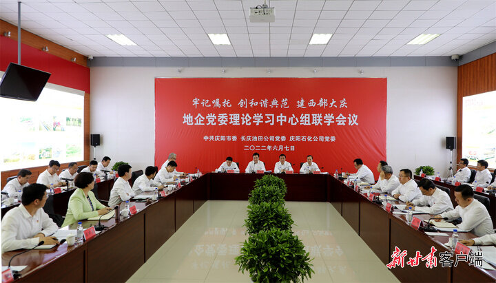 慶陽(yáng)市與長(zhǎng)慶油田公司、慶陽(yáng)石化公司共同舉行“牢記囑托 創(chuàng)和諧典范 建西部大慶”地企黨委理論學(xué)習(xí)中心組聯(lián)學(xué)會(huì)議。張昶昶 攝