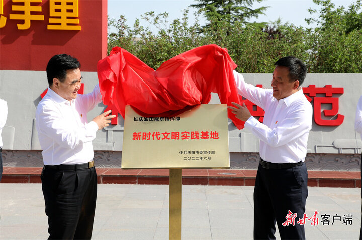 慶陽(yáng)市、長(zhǎng)慶油田公司共建共享的“新時(shí)代文明實(shí)踐基地”——長(zhǎng)慶油田隴東指揮部新時(shí)代文明實(shí)踐基地揭牌。張昶昶 攝