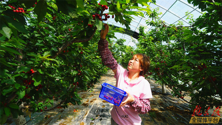 ▲游客在采摘櫻桃。