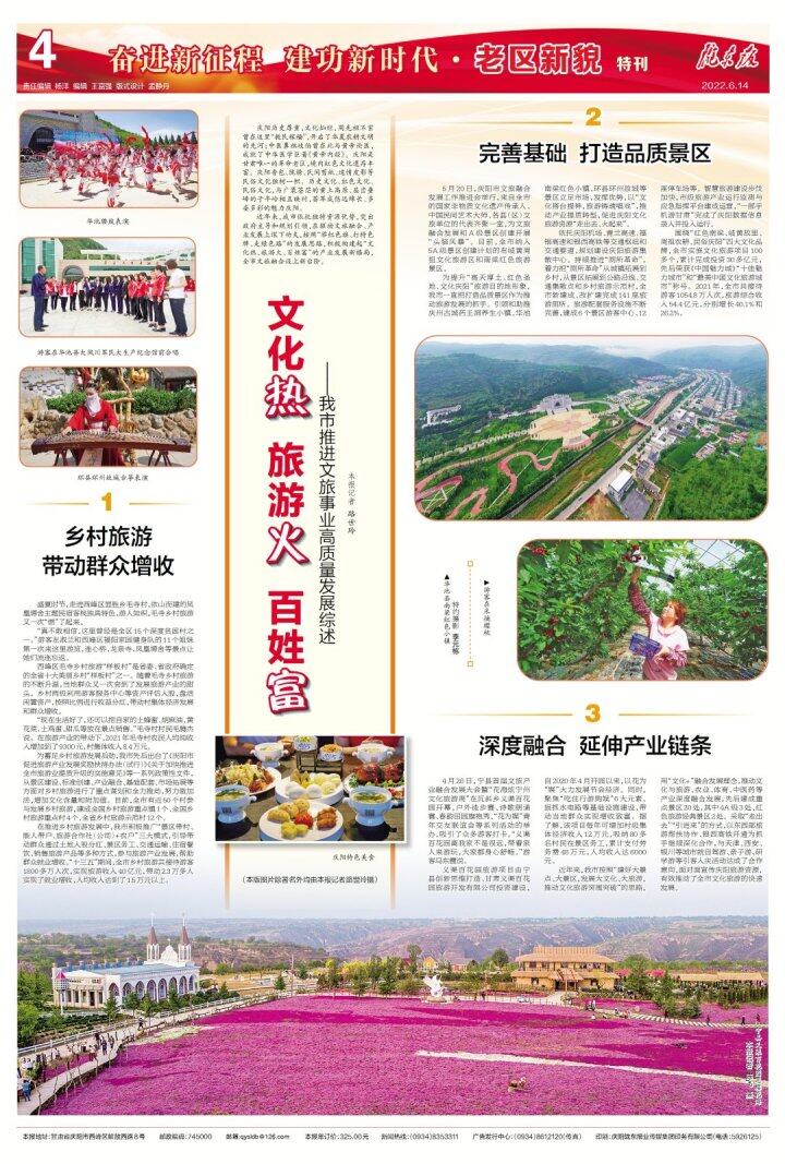 為提升“高天厚土、紅色圣地、文化慶陽”旅游目的地形象,我市一直把打造品質(zhì)景區(qū)作為推動(dòng)旅游發(fā)展的抓手。引領(lǐng)和助推慶州古城藥王洞養(yǎng)生小鎮(zhèn)、華池南梁紅色小鎮(zhèn)、環(huán)縣環(huán)州故城等景區(qū)立足市場,發(fā)揮優(yōu)勢,以“文化搭臺提神,旅游鑄魂唱戲”,推動(dòng)產(chǎn)業(yè)提質(zhì)轉(zhuǎn)型,促進(jìn)慶陽文化旅游資源“走出去、火起來”。