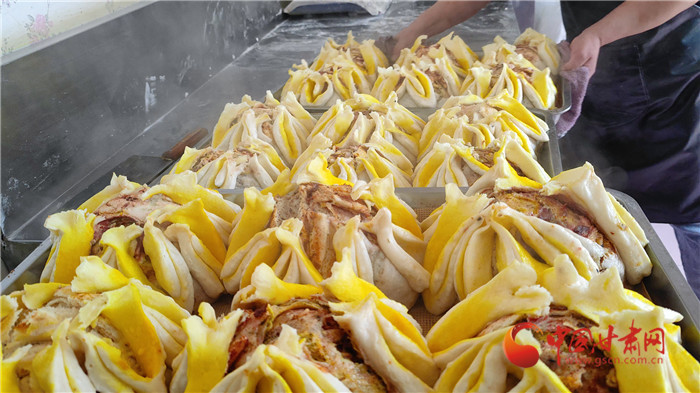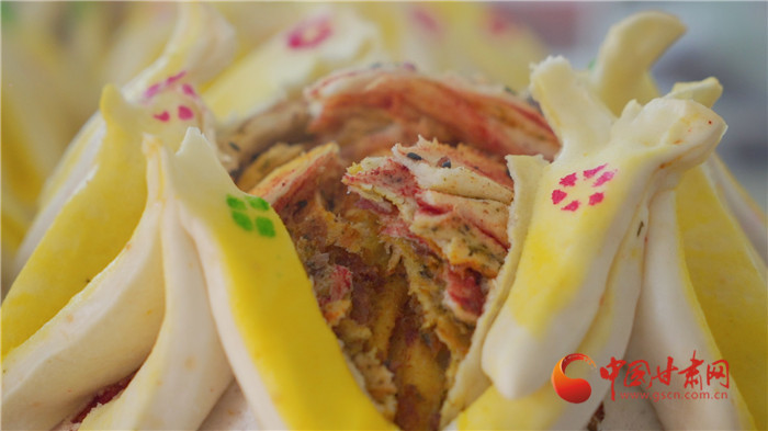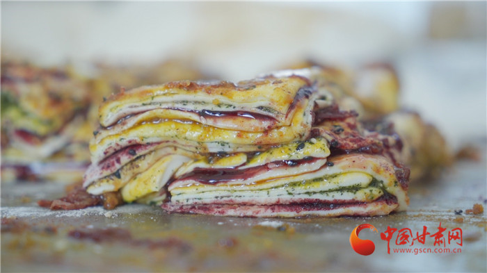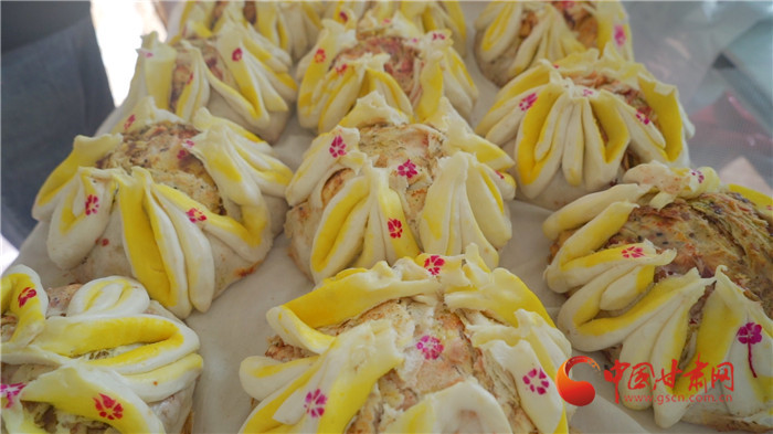 記者走進(jìn)榆中縣金崖鎮(zhèn)浩燕饅頭店,一股濃濃的胡麻油、玫瑰醬、香豆等混合的香氣撲面而來,李浩燕正在忙碌地趕制一批榆中傳統(tǒng)手工月餅。案板上除了發(fā)好的面團(tuán),還擺上了炒胡麻碎、姜黃、白砂糖等豐富的佐料。只見李浩燕從揉面開始,然后鋪餡、搟制、卷面、切分、披花,一道道工序一氣呵成。經(jīng)過一個多小時,新鮮美味的月餅出爐了,切開后,內(nèi)里豐富,色彩斑斕,咬上一口軟糯可口,回味留香。