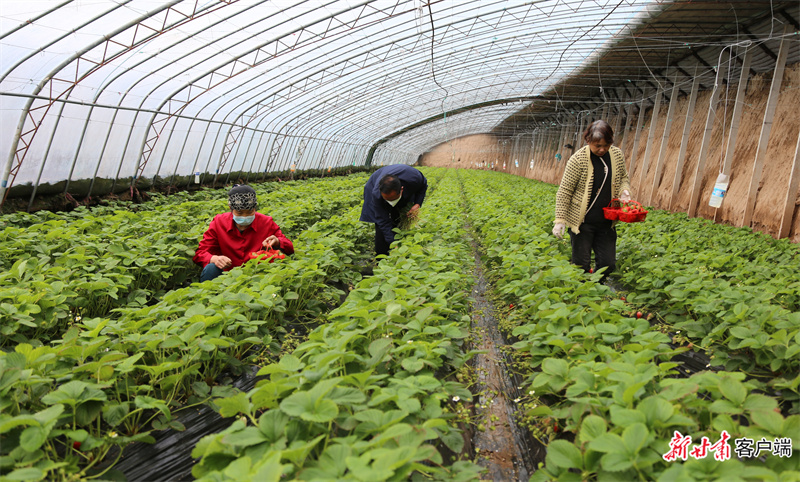慶陽(yáng)萬(wàn)潤(rùn)園種養(yǎng)殖農(nóng)民專業(yè)合作社種植戶采摘草莓。
