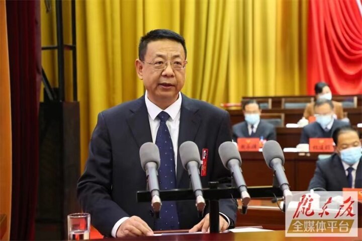 9時(shí),大會(huì)正式開(kāi)幕,全體起立,高唱國(guó)歌,激昂雄壯的旋律響徹全場(chǎng)。隨后,市政協(xié)主席李隆基向大會(huì)報(bào)告工作。