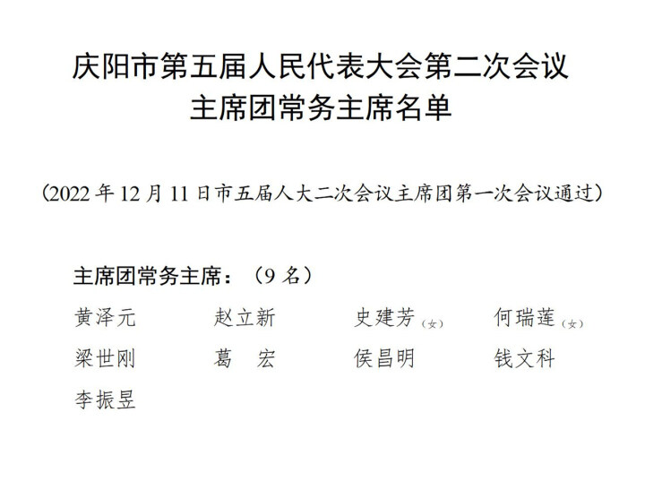 【受權(quán)發(fā)布】慶陽市第五屆人民代表大會第二次會議主席團常務(wù)主席名單