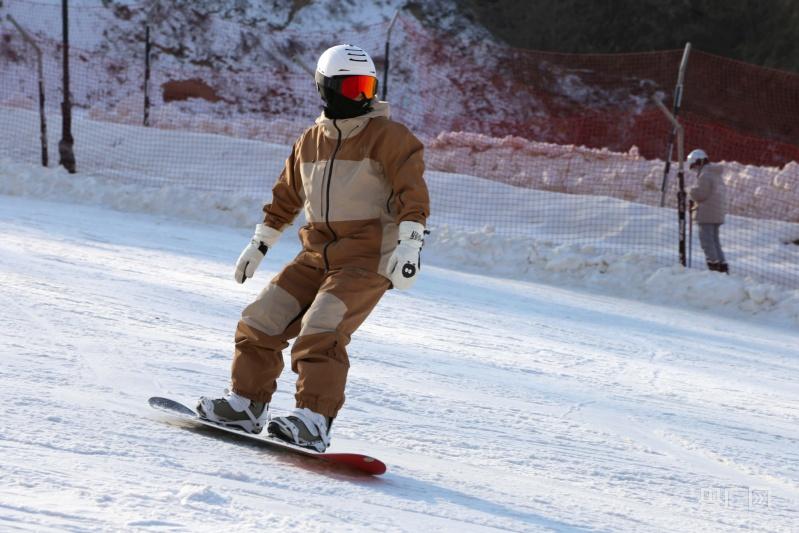 游客在慶陽(yáng)市西峰區(qū)顯勝鄉(xiāng)毛寺村隴東冰雪基地滑雪(央廣網(wǎng)發(fā) 盤小美 攝)