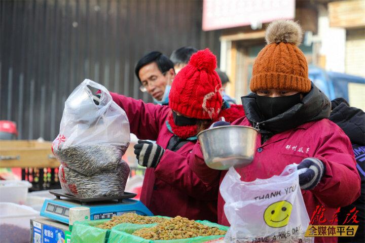 “快過年了,趁著好天氣來趕趕集,順便帶孫子逛逛,給他買點(diǎn)零食,置辦點(diǎn)年貨,沾沾趕大集的熱鬧勁兒?!闭谫I年貨的何大爺樂呵呵地說。