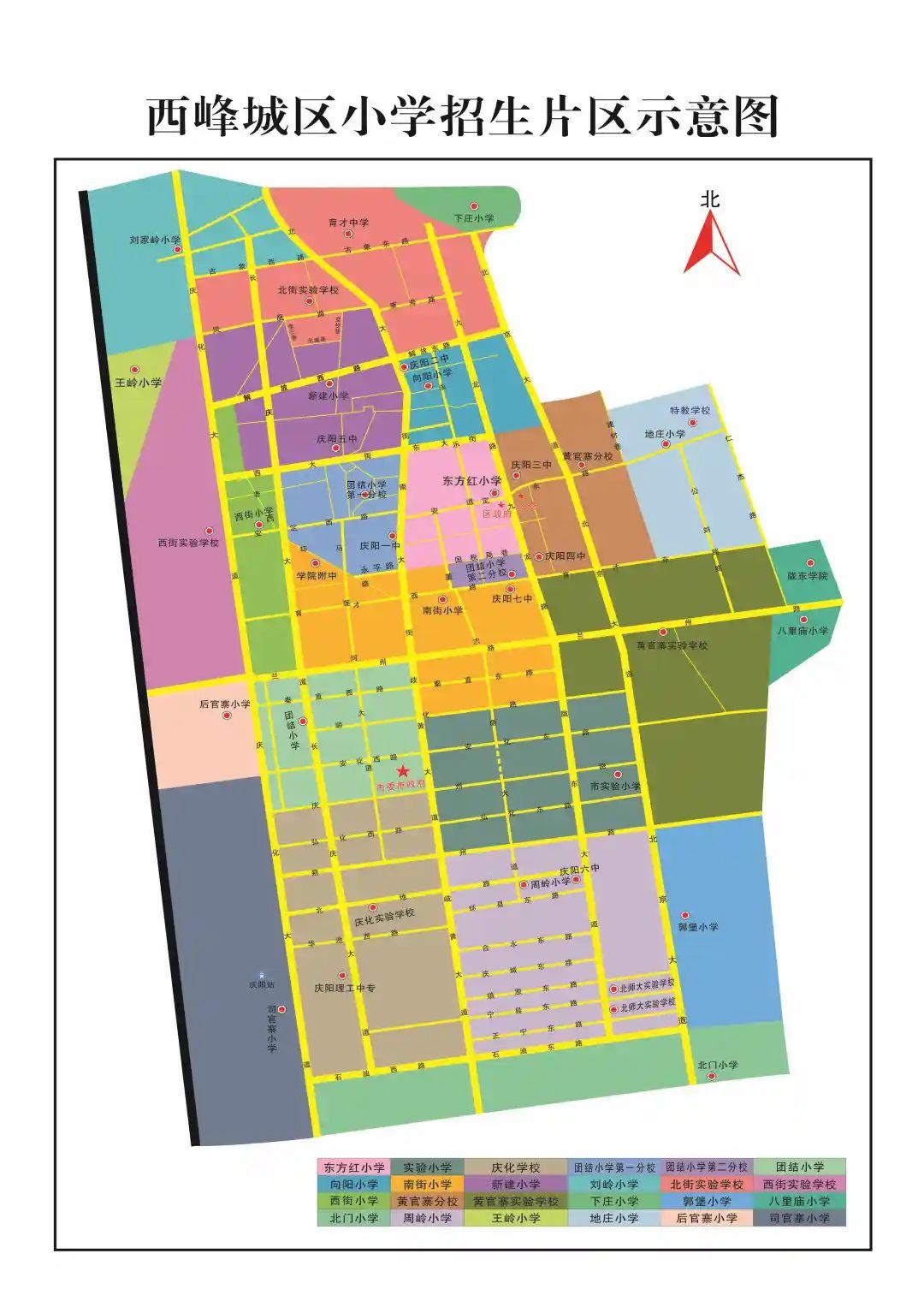 西街小學:慶化大道以東,西大街以南,長慶大道以西,蘭州路以北;慶化大道以東,解放西路以南,老西環(huán)路以西,西大街以北。