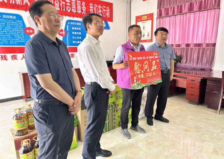 市委宣傳部和西峰區(qū)委、區(qū)人大相關(guān)領(lǐng)導(dǎo)在集善樂業(yè)殘疾人網(wǎng)絡(luò)就業(yè)基地開展慰問。