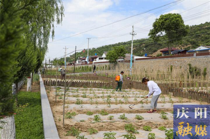 ▲在合水縣太白鎮(zhèn)太白村,村民在屋前的菜園里勞作。
