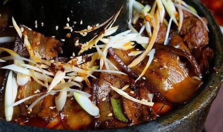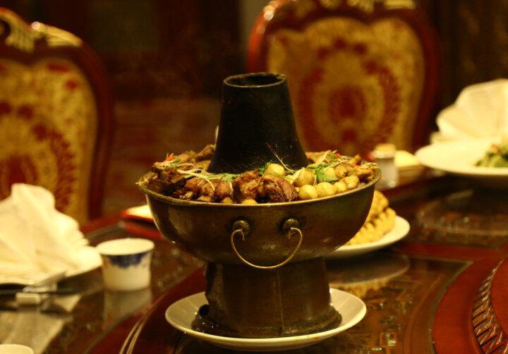 最后裝入暖鍋的是一層肉類。包括肥肉片、丸子、酥肉、肘子肉、排骨肉等。這些食材圍成一堆,將底下的豆腐,黃花菜,粉條,白蘿卜等菜蓋得嚴(yán)嚴(yán)實實。裝好各種食材后,灌上雞湯或者豬肉湯,蓋上蓋子,加入木炭燒開就可以食用了。吃暖鍋的同時也會配上幾道菜,圍著鍋轉(zhuǎn)一圈。一來也是為了看起來不單調(diào)。二來也可以讓吃客們換換口味。暖鍋外形是圓的,除了制作考究,還有一個重要原因,那就是它所代表的是圓滿和團圓,是慶陽人對生活的一種祝福和期盼。它能讓各種菜肴在滾燙的烈火中經(jīng)受煎熬而相互包容,和睦相處。慶陽人愛吃暖鍋子,或許就是它在當(dāng)?shù)氐娘嬍澄幕镒畲笙薅鹊伢w現(xiàn)了隴東人樸實敦厚的胸懷。