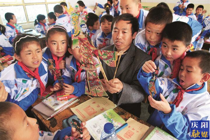 皮影進(jìn)課堂。慶陽(yáng)融媒特約攝影 張永鑫 攝
