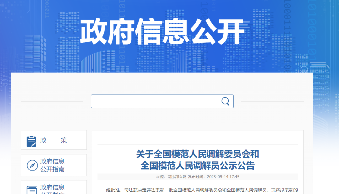 和全國(guó)模范人民調(diào)解員公示公告