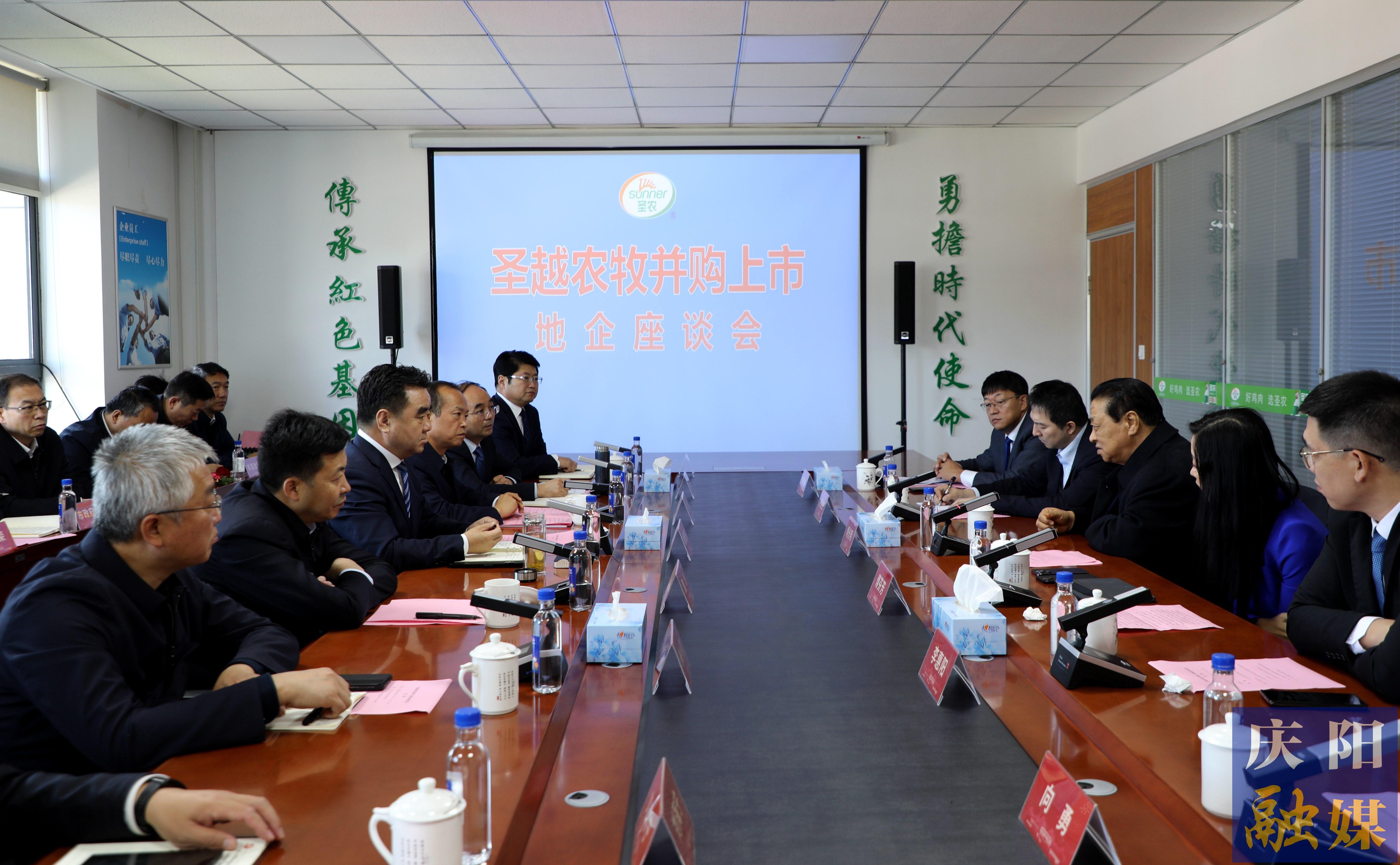 儀式后,召開了圣越農(nóng)牧并購上市地企座談會,就進一步加快項目建設(shè)、深化務(wù)實合作交換意見。傅光明表示,圣農(nóng)集團將堅定發(fā)展信心,持續(xù)深耕慶陽,加大投資力度,為慶陽群眾增收致富、農(nóng)業(yè)提質(zhì)增效作出更大貢獻。黃澤元表示,慶陽市將牢固樹立應(yīng)當(dāng)支持、必須支持、持續(xù)支持、有效支持的意識,推動形成“齊心協(xié)力、團結(jié)一致、深度合作、互利共贏”的良好局面。