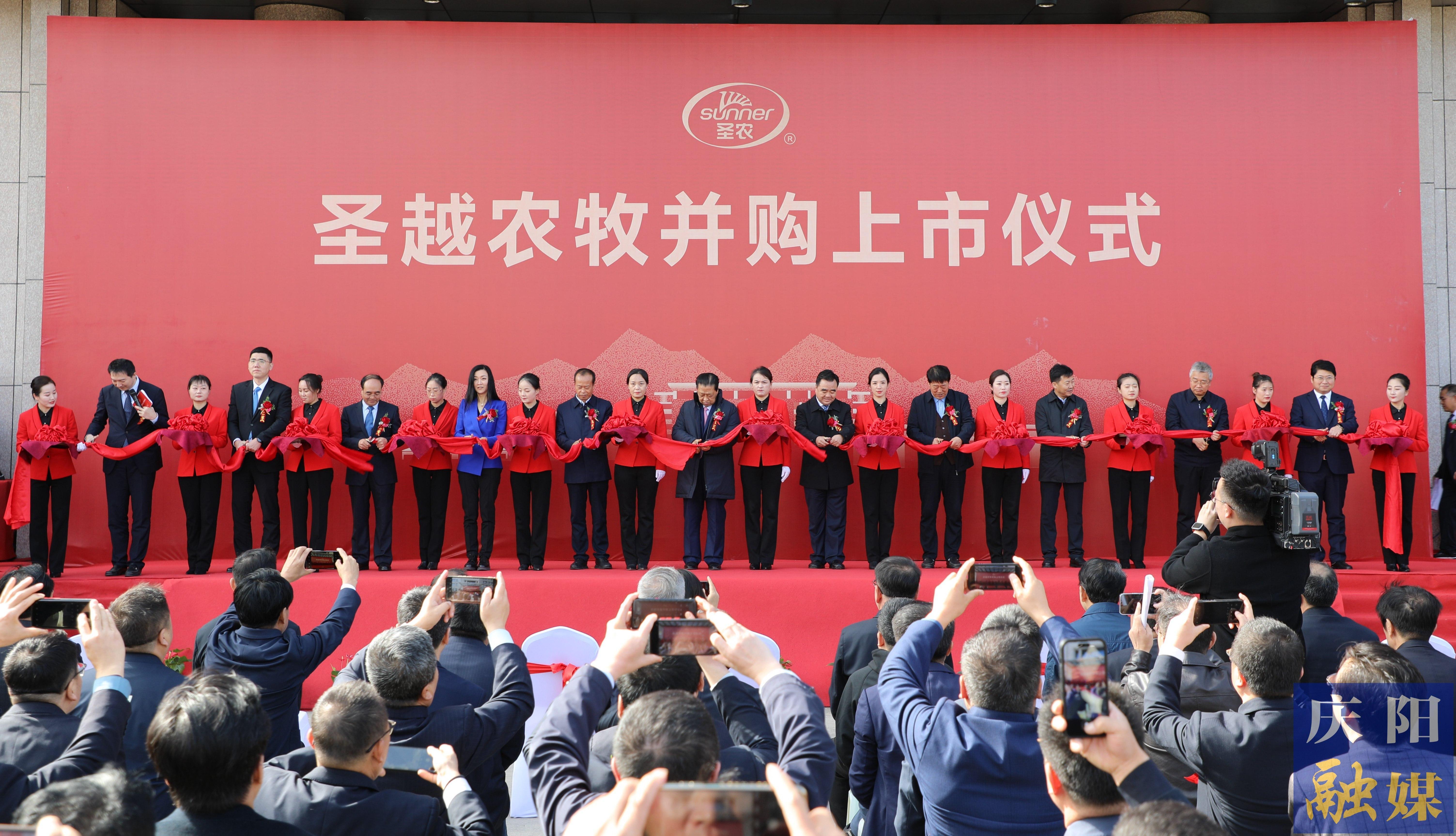 儀式上,圣農(nóng)集團為鎮(zhèn)原縣捐贈慈善基金并設(shè)立基金會,支持當(dāng)?shù)剜l(xiāng)村振興和公益活動。出席領(lǐng)導(dǎo)共同為甘肅圣越農(nóng)牧發(fā)展有限公司并購上市剪彩。
