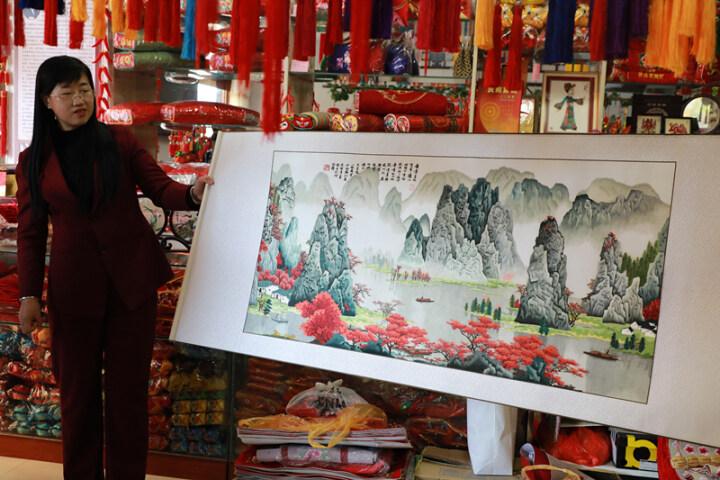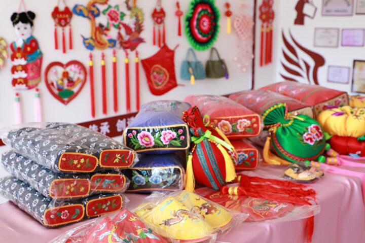 2021年,任艷艷所在的解放村在天津東西部協(xié)作項(xiàng)目的幫扶下建成了美麗鄉(xiāng)村示范點(diǎn),她的香包刺繡產(chǎn)品也在這里有了一個(gè)小小的展廳。對(duì)于未來(lái)的發(fā)展,任艷艷也有了新的打算:“我想依托這些資源發(fā)展鄉(xiāng)村文化旅游產(chǎn)業(yè),前面的這片地可以種上果樹(shù)和蔬菜搞采摘,這幾間窯洞可以搞農(nóng)家樂(lè),還有民俗文化體驗(yàn),讓來(lái)到這里的人都能有一個(gè)豐富的鄉(xiāng)村游體驗(yàn),讓更多的農(nóng)村婦女在家門(mén)口就業(yè)。”