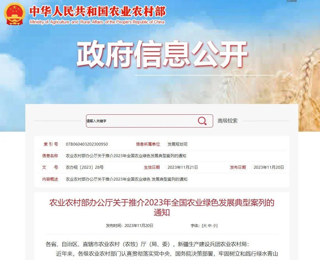 關(guān)于推介2023年全國農(nóng)業(yè)綠色發(fā)展典型案列的通知