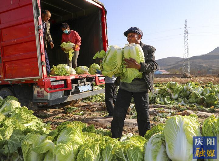 鎮(zhèn)原縣平泉鎮(zhèn)村民采摘白菜。