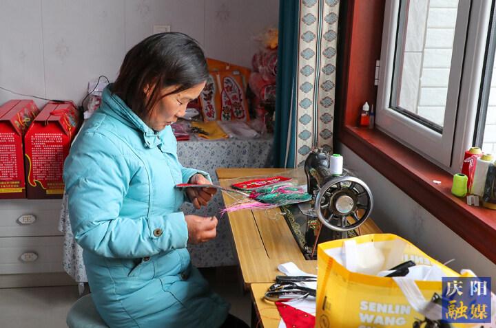 鎮(zhèn)原縣廟渠鎮(zhèn)文夏村村民在家中制作刺繡產(chǎn)品。