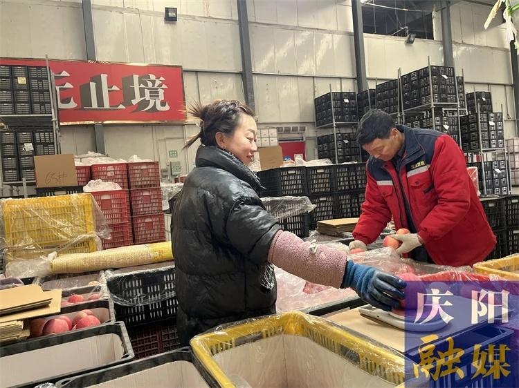 11月14日,記者走進慶城縣金誠果蔬有限公司的工作車間,一筐筐紅彤彤的蘋果整齊排列,工人們將蘋果分揀后進行裝箱,很快,這些蘋果就能運往全國各地。