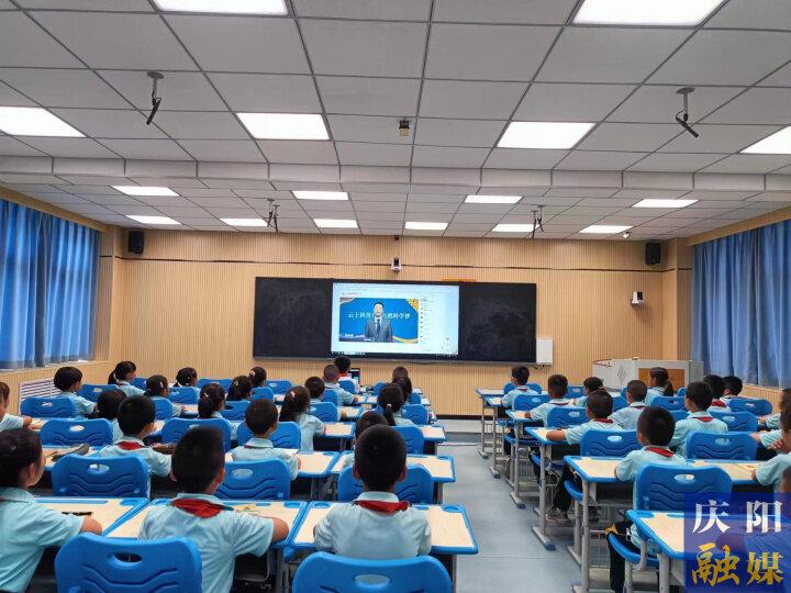 ▲寧縣城關(guān)小學學生通過直播網(wǎng)上參觀甘肅科技館。
