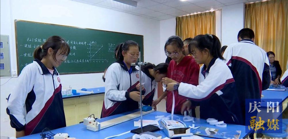 華池縣柔遠(yuǎn)初中學(xué)生在做科技實(shí)驗(yàn)。