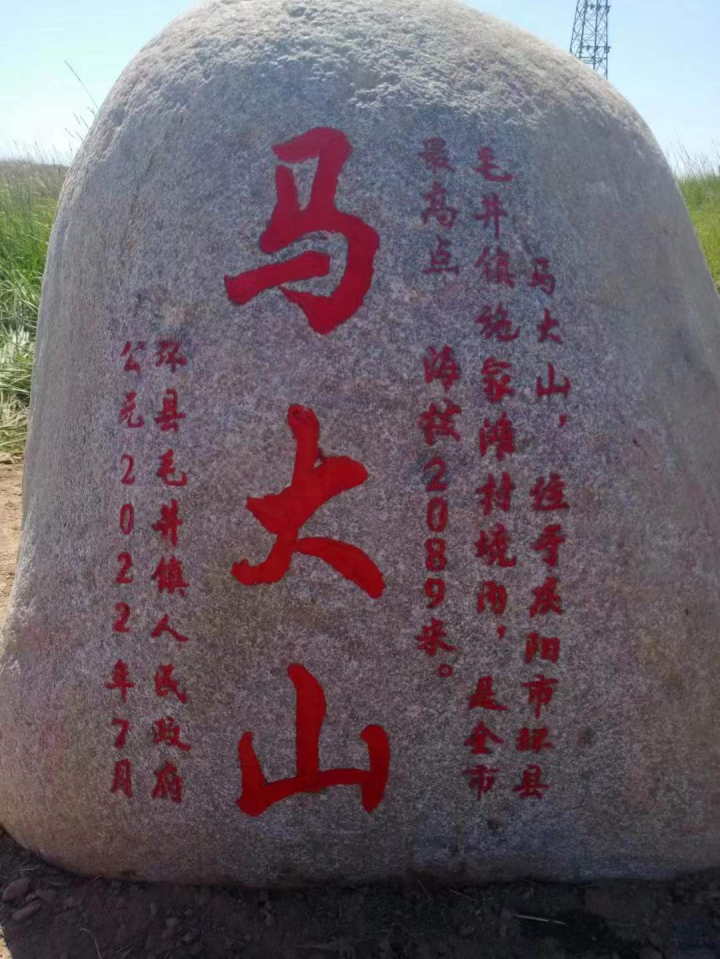 馬大山之高,高在超然。馬大山又名馬家大山。具體位于環(huán)縣毛井鎮(zhèn)施家灘村境內(nèi),距鎮(zhèn)政府41公里,環(huán)縣城117公里。據(jù)《慶陽(yáng)志》記載:“慶陽(yáng)市地勢(shì)南低北高,海拔在885米與2089米之間。全市海拔相對(duì)高差1204米,北部馬家大山最高為2089米,南部政平河灘最低為885米?!币蚱涞靥幐蕦幗唤纾@里也曾有過紛爭(zhēng)。2022年7月毛井鎮(zhèn)人民政府在此立碑為記。顯然,在這擁有27119平方公里的土地上,唯它最高,應(yīng)該值得驕傲和書寫吧。但翻閱古籍文獻(xiàn),卻很難找見一點(diǎn)什么。杜甫的“會(huì)當(dāng)凌絕頂,一覽眾山小”,李白的“明月出天山,蒼茫云海間”與其無(wú)緣。陶淵明的“種豆南山下,草盛豆苗稀”,蘇軾的“不識(shí)廬山真面目,只緣身在此山中”與其無(wú)意。但馬大山依然在那,從未改變,他孤傲而超然,站在山上,歷史的云煙隨風(fēng)飄過,渺渺人生何其坦然。人,怎能不敬畏這永不褪色的大山。此時(shí),你若情不自禁高亢幾句,即使五音不全,那也真叫個(gè)“舒坦”!