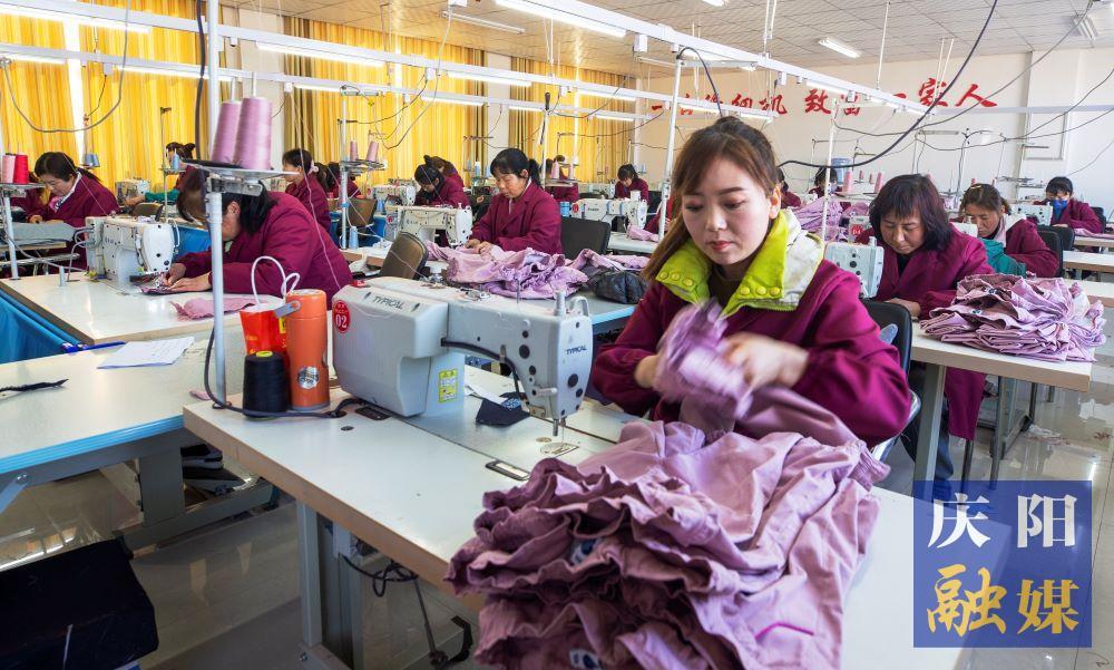 早勝鎮(zhèn)“啟夢”鄉(xiāng)村就業(yè)工廠工人在趕制服裝。 慶陽融媒記者 李卿 攝