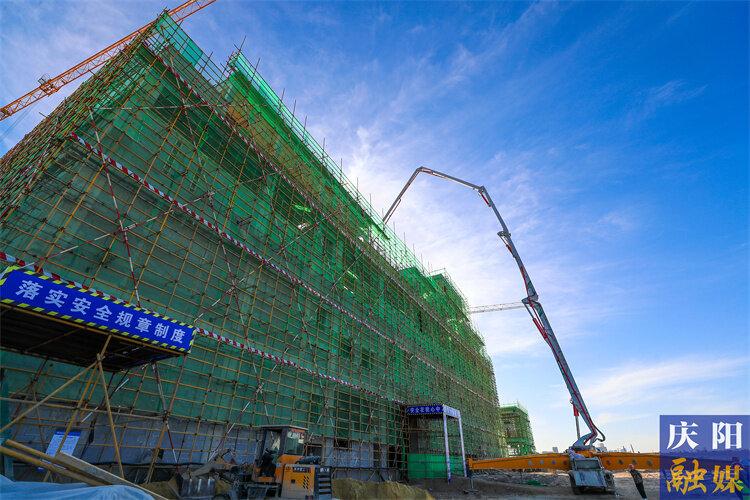 秦淮數(shù)據(jù)零碳數(shù)據(jù)中心產(chǎn)業(yè)基地項(xiàng)目一期主體結(jié)構(gòu)封頂。慶陽融媒記者 陳飛攝