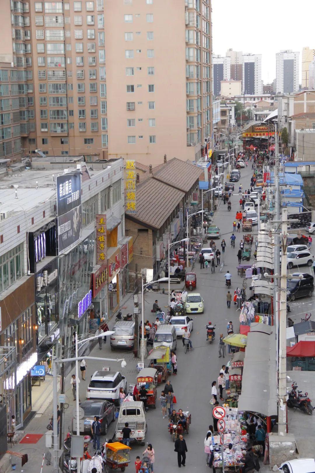 八十年代初,南城壕街道兩邊還是一家挨一家灰瓦翹脊、石頭臺階、黑漆門窗的老鋪面,經(jīng)營日雜百貨、布匹織品、皮毛山貨、瓷器鐵器、調(diào)料食品、棉花網(wǎng)套等日常用品,和南北大街主街道上經(jīng)營五金、百貨、副食、糧食、蔬菜等國營門市部比起來,別有一番古風遺韻。加之它西高東低的坡道地勢,站在西街口上一眼望去,鱗次櫛比的貨鋪,青磚灰瓦的屋頂,加上摩肩接踵熙熙攘攘的人群,不絕于耳此起彼伏的叫賣聲、音樂聲,一腳邁進去,真有一種走進人間煙火的感覺。