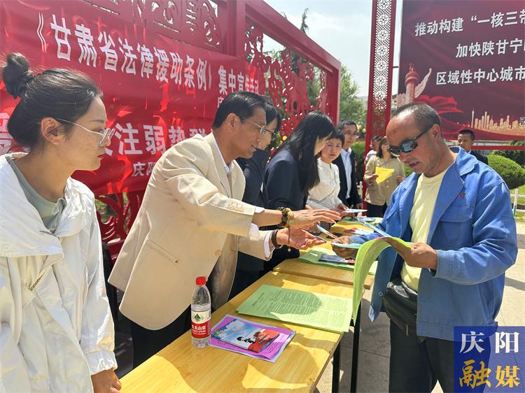 慶陽市司法局在西峰城區(qū)東湖公園開展普法宣傳活動。