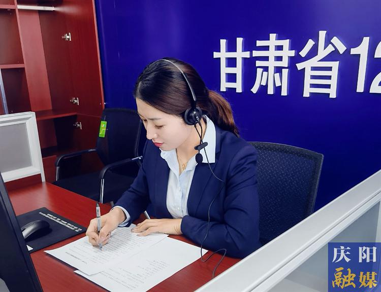 甘肅12348法律服務熱線慶陽分中心“巧兒說法”律師服務團隊律師接聽群眾咨詢電話。