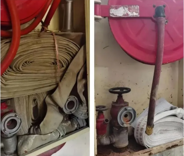 常見問題:消火栓箱內(nèi)配件不齊全,出水栓口處銹蝕、消防水帶和連接頭老化、軟管卷盤損壞,不能正常使用。