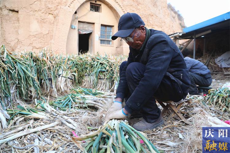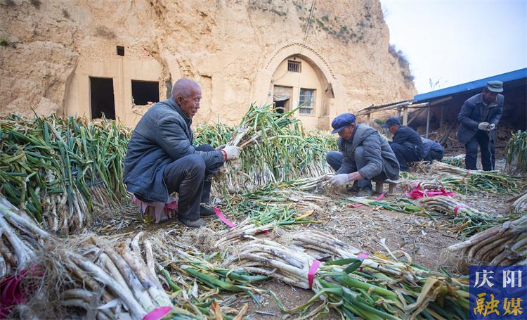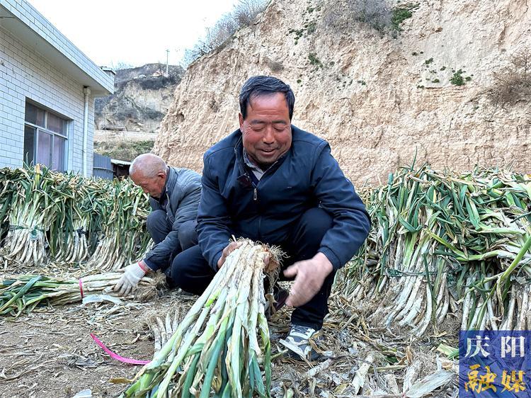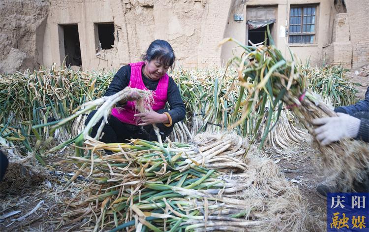 時逢初春,走進正寧縣宮河鎮(zhèn)彭姚川村一處民宅,彭會軍夫婦和幾名村民在捆綁大蔥,空氣中彌漫著濃郁的蔥香味。“這大蔥莖粗肉厚,吃起來辛辣脆香?!狈N了37年大蔥的彭會軍說道。