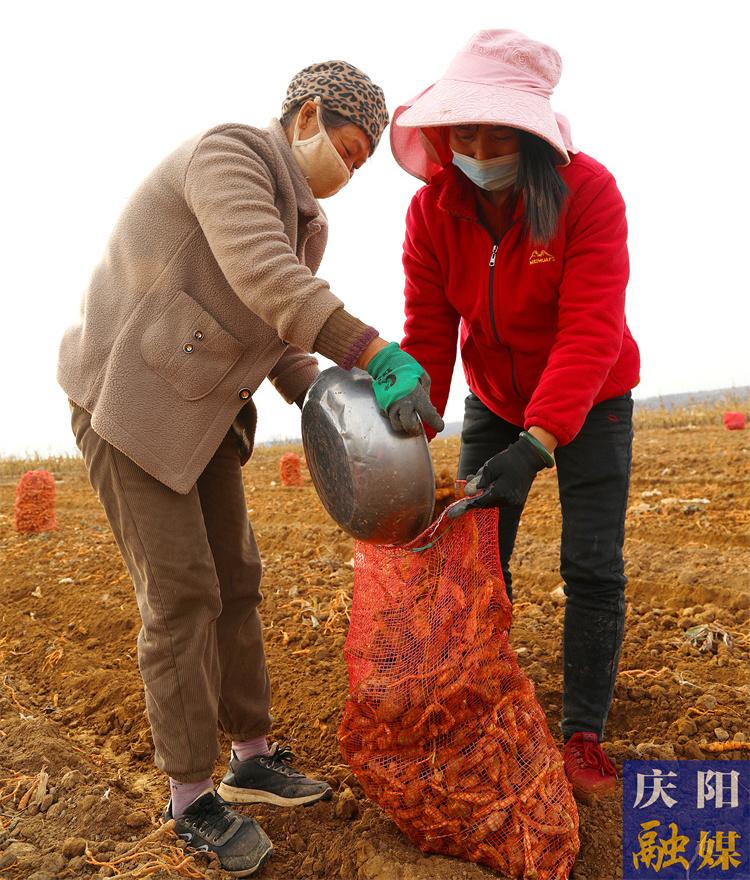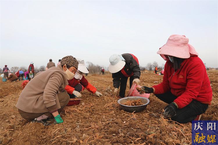 正寧縣宮河鎮(zhèn)南莊村村民曹會剛組織村民收獲生地。慶陽融媒記者 李卿攝