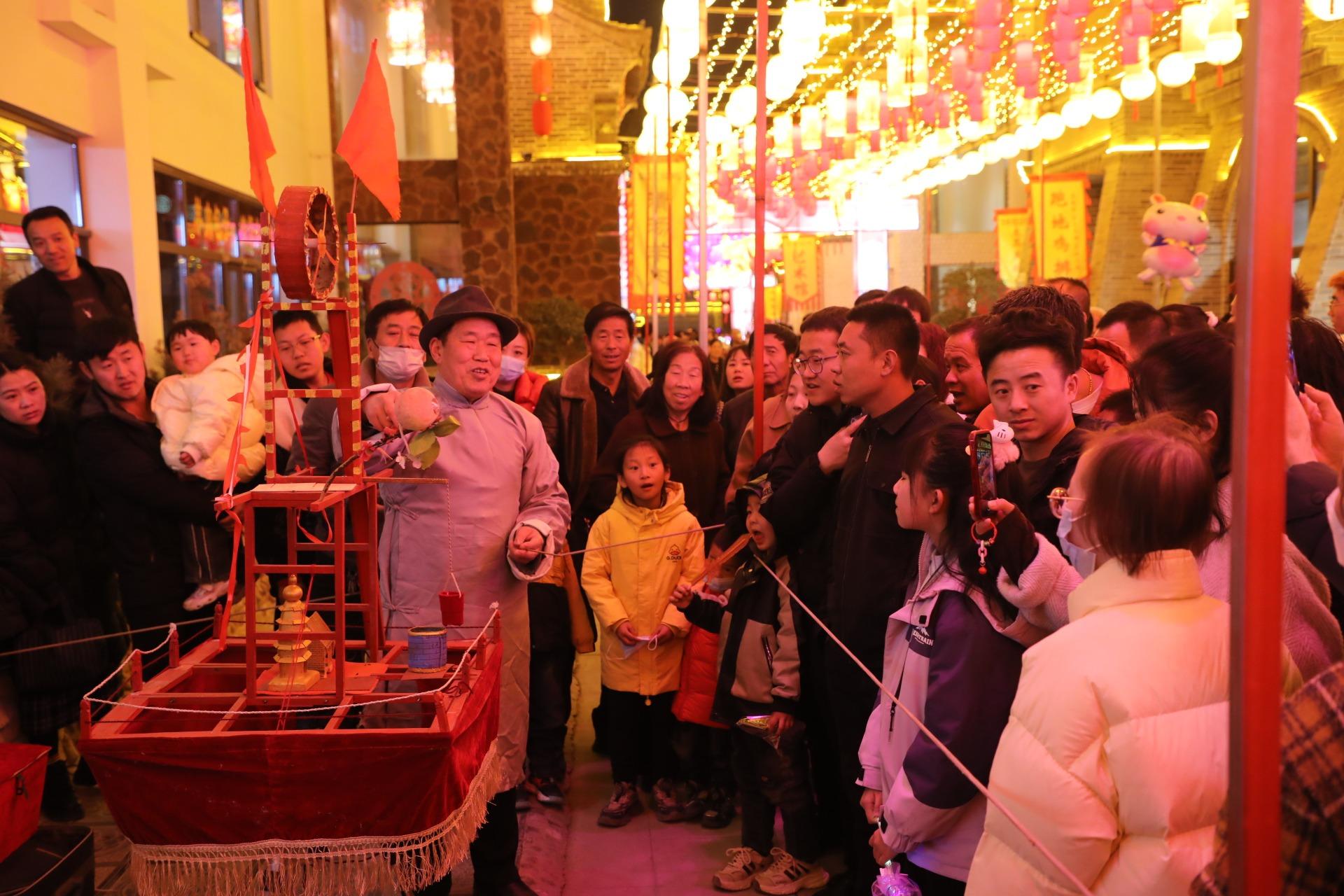來自環(huán)縣藝龍演藝公司的專業(yè)藝術團隊為游客準備了誠意滿滿的新春“見面禮”,專業(yè)藝術表演和精彩絕倫的節(jié)目讓人目不暇接、心生歡喜,從戲曲、雜技到器樂獨奏,從秦腔清唱到茶樓穿越,傳承千年的匠心手藝和非遺故事,在這里不斷地被創(chuàng)新演繹?!坝慰驮絹碓较矏蹅鹘y(tǒng)文化活動,并希望置身其中成為主角。”現場工作人員說,大年初四以來,每場觀看人數超過5000人次,每天觀看演出人流量達2萬人以上。