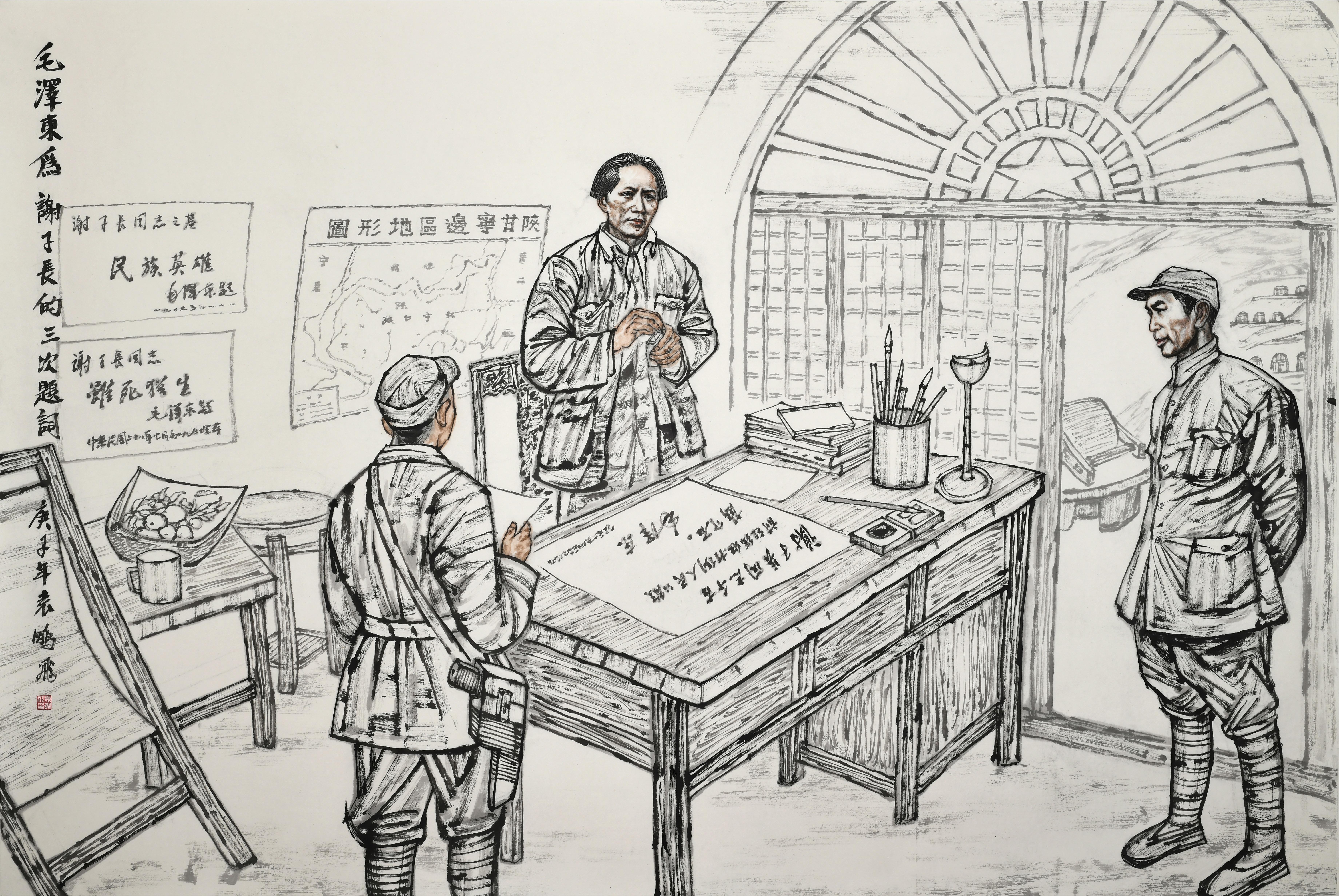 毛澤東為謝子長的三次題詞 袁鵬飛 繪