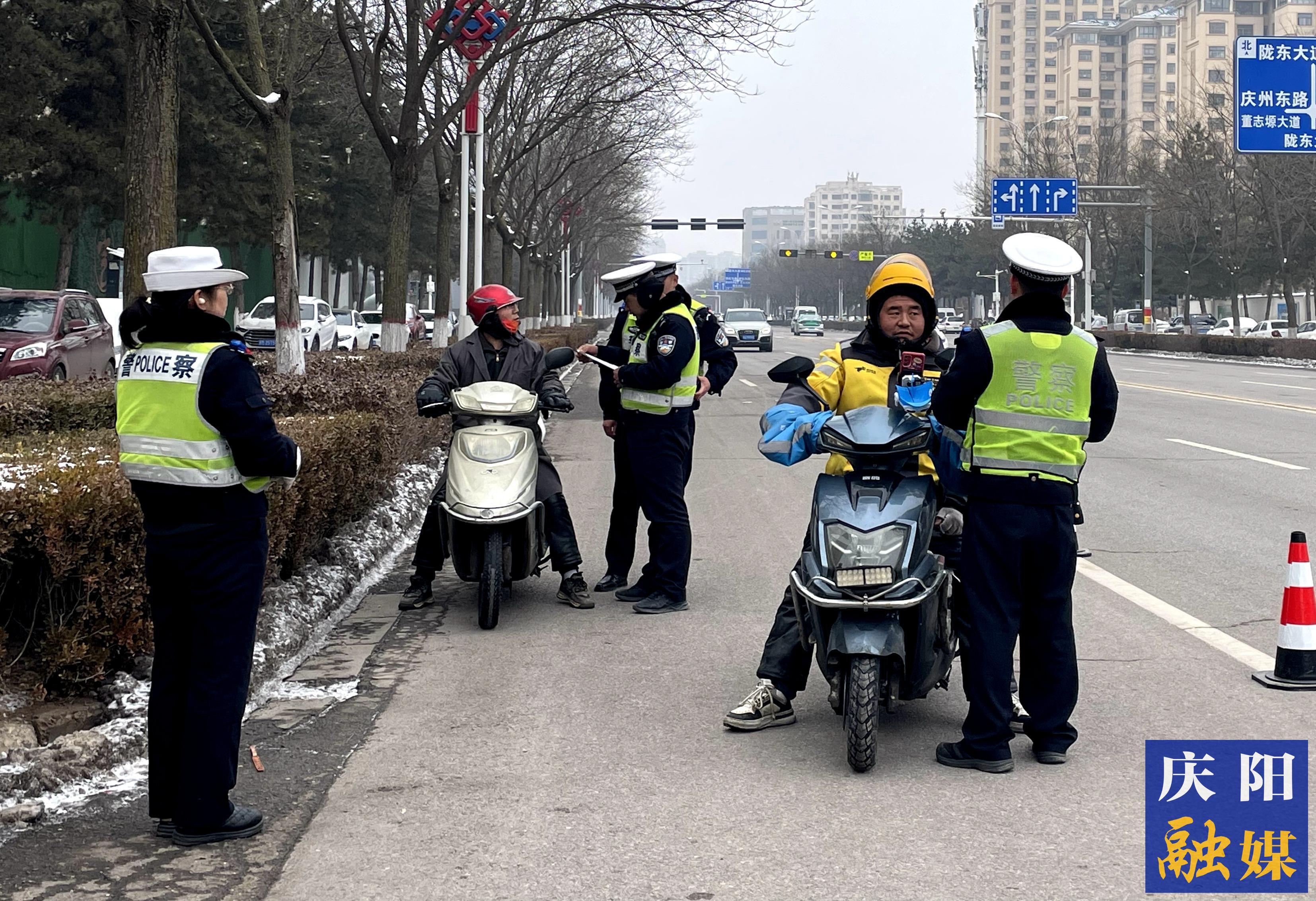 2月27日,在隴東大道,市公安局西峰分局交警大隊民警對駕乘二輪、三輪摩托車和電動車不戴安全頭盔行為進(jìn)行糾正、勸導(dǎo)和查處,采取整治與教育相結(jié)合的方式,引導(dǎo)駕乘人員正確佩戴安全頭盔,共同為創(chuàng)建全國文明城市營造良好交通環(huán)境。