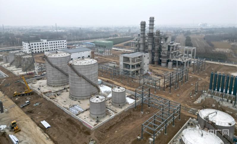 慶陽宏大化工20萬噸雙氧水和2萬噸嗎啉項目施工現(xiàn)場(央廣網(wǎng)發(fā) 盤小美 攝)