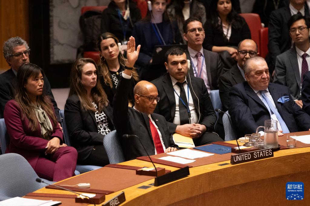 4月18日,在位于紐約的聯(lián)合國總部,美國常駐聯(lián)合國副代表羅伯特·伍德(前左)在安理會(huì)就決議草案進(jìn)行表決時(shí)投反對(duì)票。新華社記者 謝鍔 攝