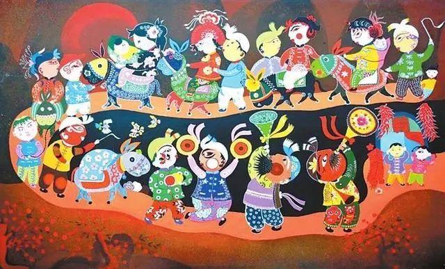 華池民間布貼畫(huà)是一種古老的民間工藝美術(shù),是隴東文化的重要組成部分。華池拼布創(chuàng)作以粗布為原料,色彩豐富鮮艷,剪貼的邊線明朗整潔,富有木刻版畫(huà)的刀木特點(diǎn)。其內(nèi)容多取材于人物、動(dòng)物、花鳥(niǎo)等題材,注重色彩對(duì)比,以大紅大紫的色彩,夸張化的描述,追求強(qiáng)烈的直觀效果,講究裝飾性;風(fēng)格浪漫稚拙,渾厚質(zhì)樸,氣韻生動(dòng)。