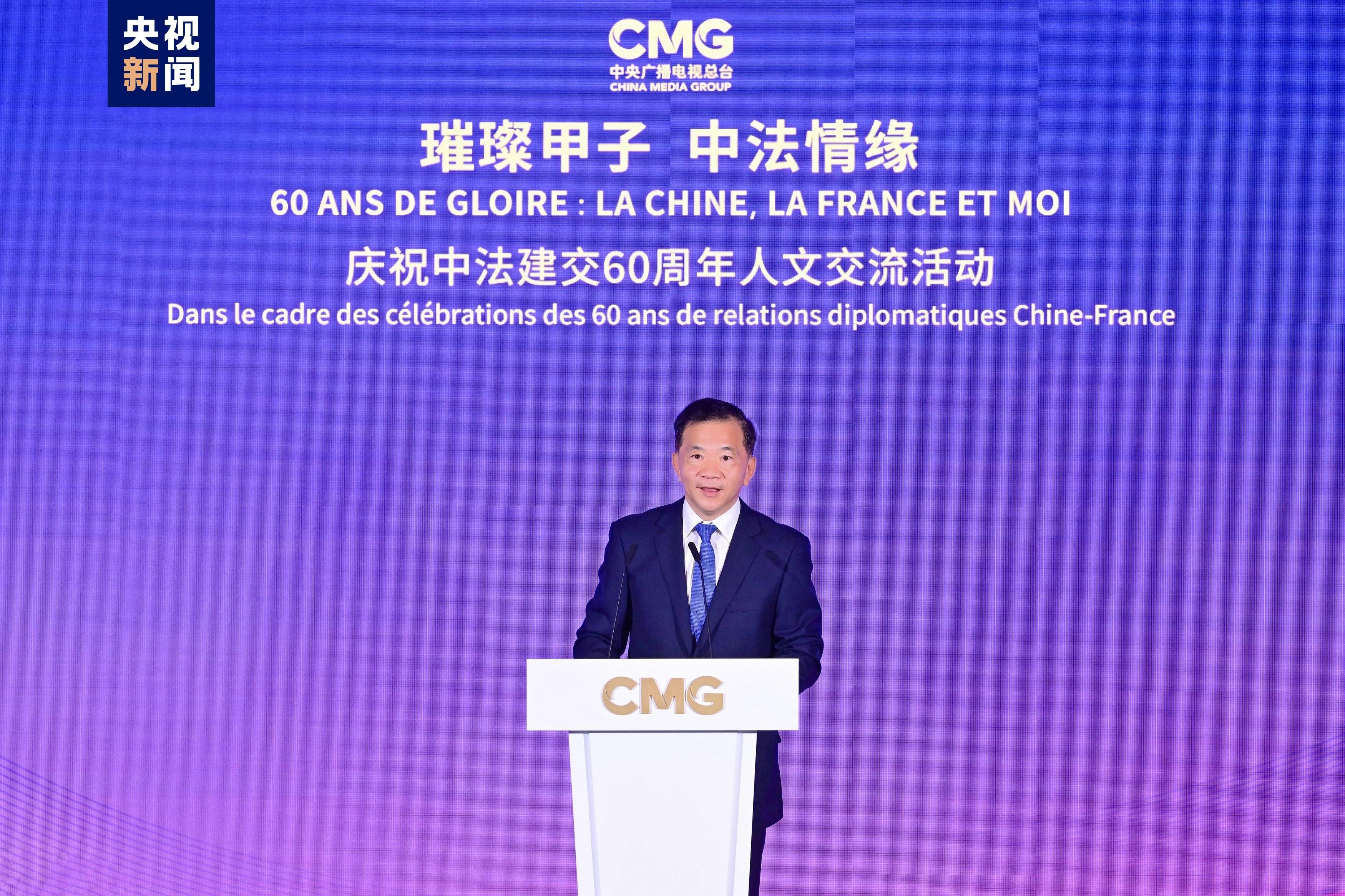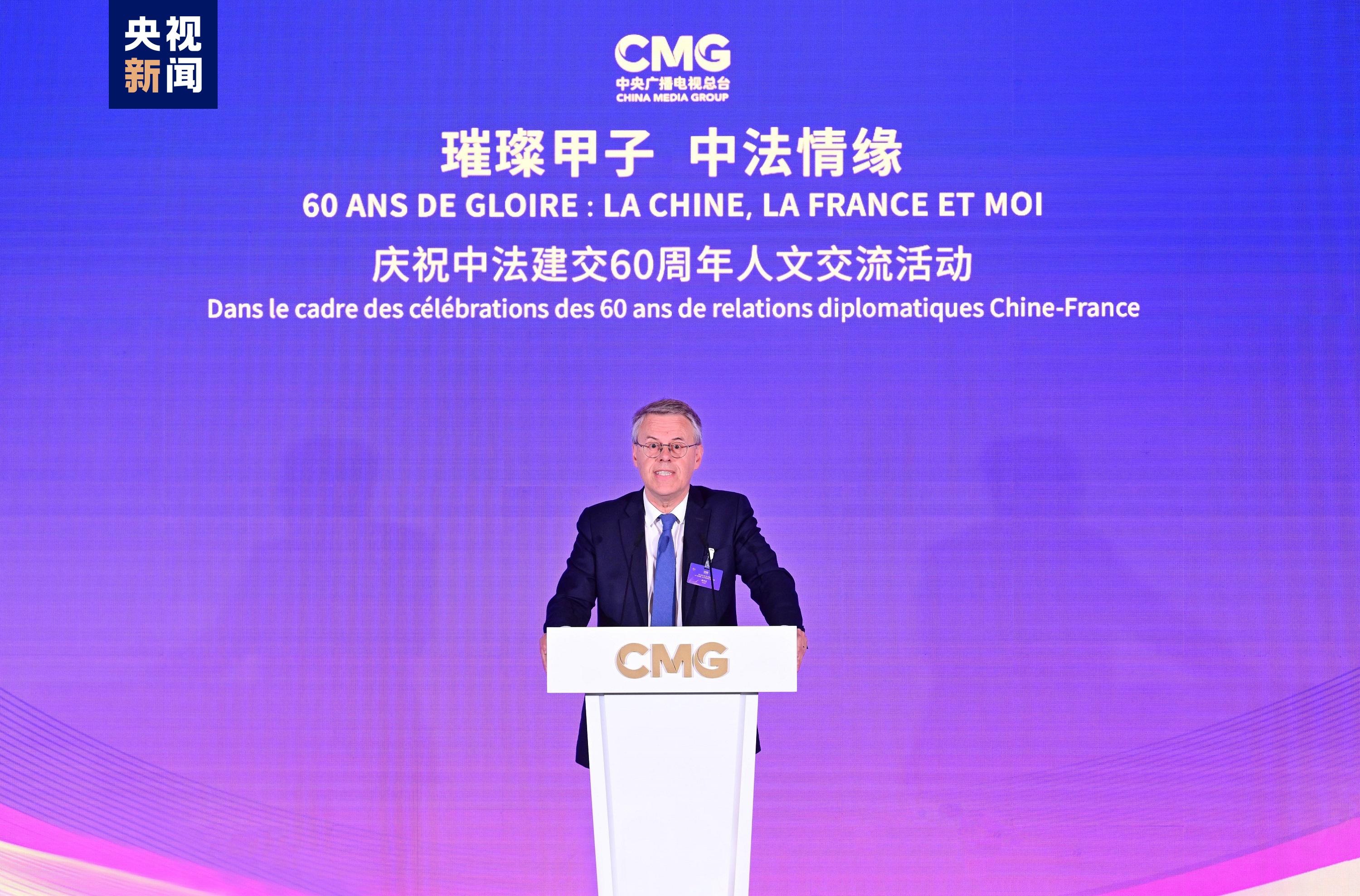 慎海雄表示,習(xí)近平主席指出,敢為人先、與時(shí)俱進(jìn)是中法關(guān)系始終走在中國(guó)同西方國(guó)家關(guān)系前列的重要法寶。法國(guó)是具有獨(dú)立見(jiàn)解、獨(dú)特個(gè)性的西方大國(guó),不僅因其經(jīng)濟(jì)實(shí)力,還因國(guó)家品質(zhì)和人民氣節(jié),贏得了中國(guó)人民的尊重。建交60年來(lái),中法兩國(guó)的友誼之船在兩國(guó)元首把舵定向下行穩(wěn)致遠(yuǎn)。人文交流貴在思想、文化的交匯、碰撞和吸引。中央廣播電視總臺(tái)精品節(jié)目《平“語(yǔ)”近人——習(xí)近平喜歡的典故》(國(guó)際版)在法國(guó)播出,為大家讀懂習(xí)主席的思想、中國(guó)文化、中國(guó)智慧打開(kāi)一扇思想之窗,邀大家共賞璀璨輝煌的中華文明和新時(shí)代中國(guó)的獨(dú)特魅力。站在中法建交一甲子的歷史節(jié)點(diǎn),總臺(tái)愿與法國(guó)朋友們并肩同行,為打造更加牢固、更富活力的中法全面戰(zhàn)略伙伴關(guān)系、推動(dòng)構(gòu)建人類命運(yùn)共同體貢獻(xiàn)智慧和力量。