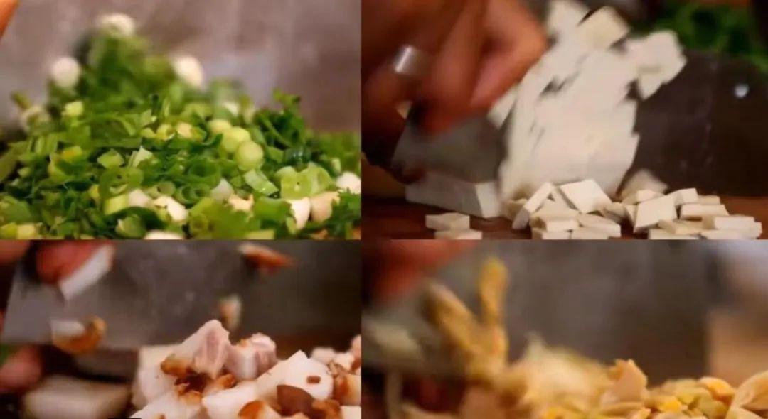 湯分為葷湯和清湯兩種,葷湯加臊子,清湯不加。清湯的做法:將白蘿卜、紅蘿卜、豆腐、土豆、番瓜、黃花菜、少許木耳切丁,其中白蘿卜丁、紅蘿卜丁用開(kāi)水提前掠熟。炒制過(guò)程中加入大量辣椒面、胡椒粉、少許花椒粉、鹽,加水成湯??谖镀匾稽c(diǎn)好。