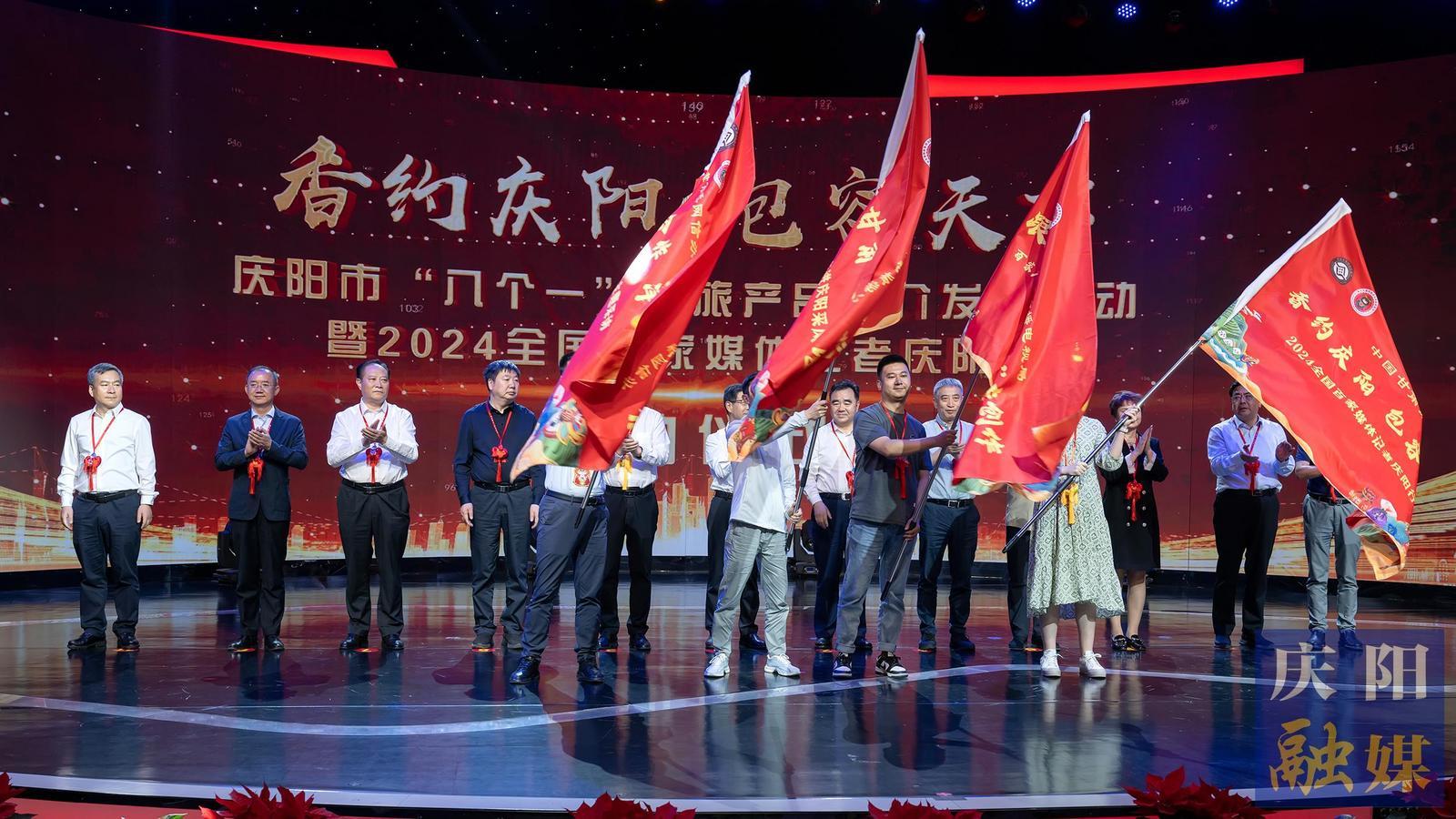 隨后,舉行了“香約慶陽包容天下”2024全國百家媒體記者慶陽行啟動儀式。何效祖、黃澤元、程亮、次仁羅布分別向中國甘肅網(wǎng)邀請的全國百家新聞媒體、省文旅廳邀請的新媒體團(tuán)隊、省廣電局邀請的全國百家廣播電視和網(wǎng)絡(luò)視聽媒體以及天津市新聞媒體授旗,與會領(lǐng)導(dǎo)共同啟動“香約慶陽 包容天下”2024全國百家媒體記者慶陽行活動,人民日報社記者宋朝軍宣讀了《倡議書》。