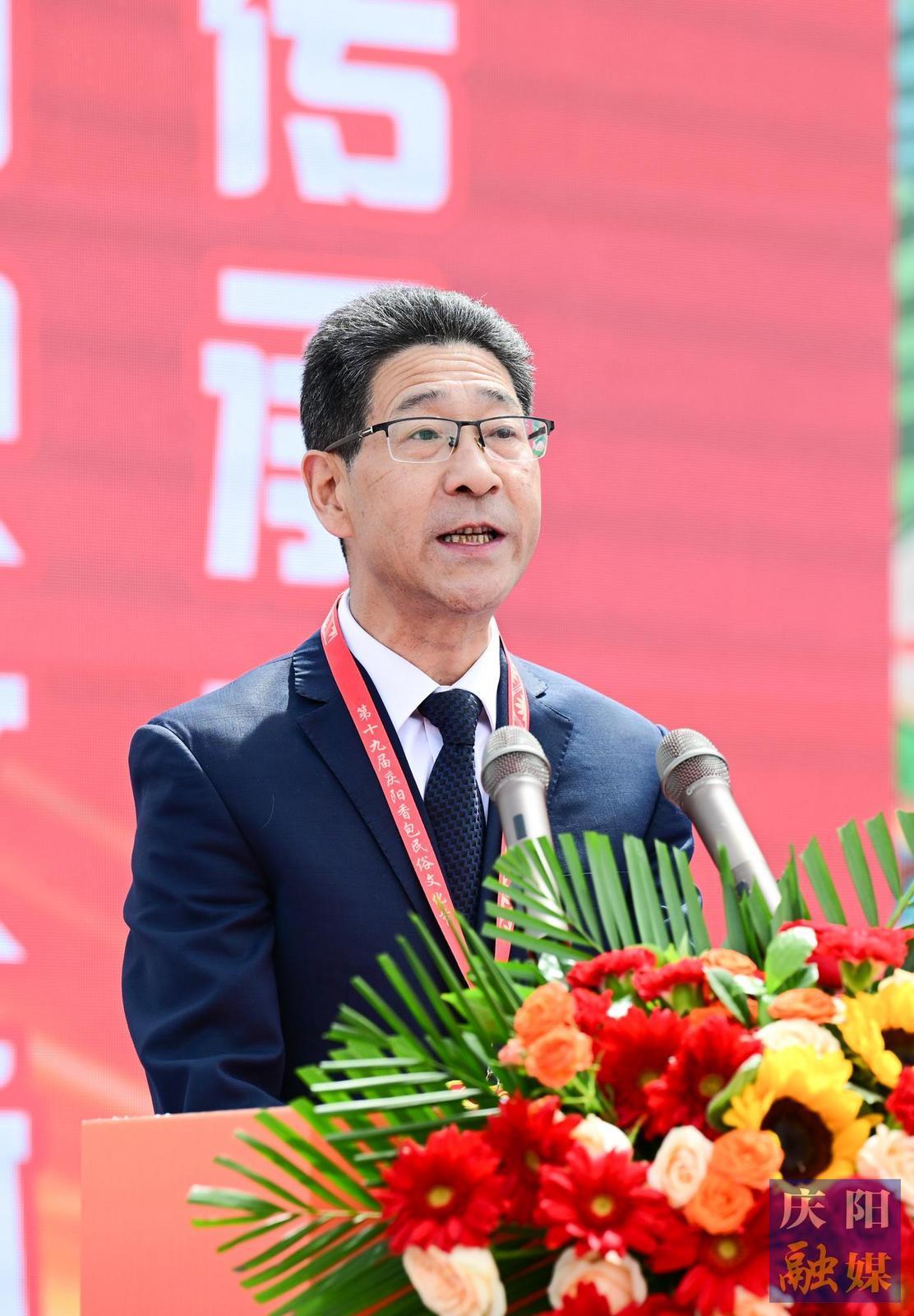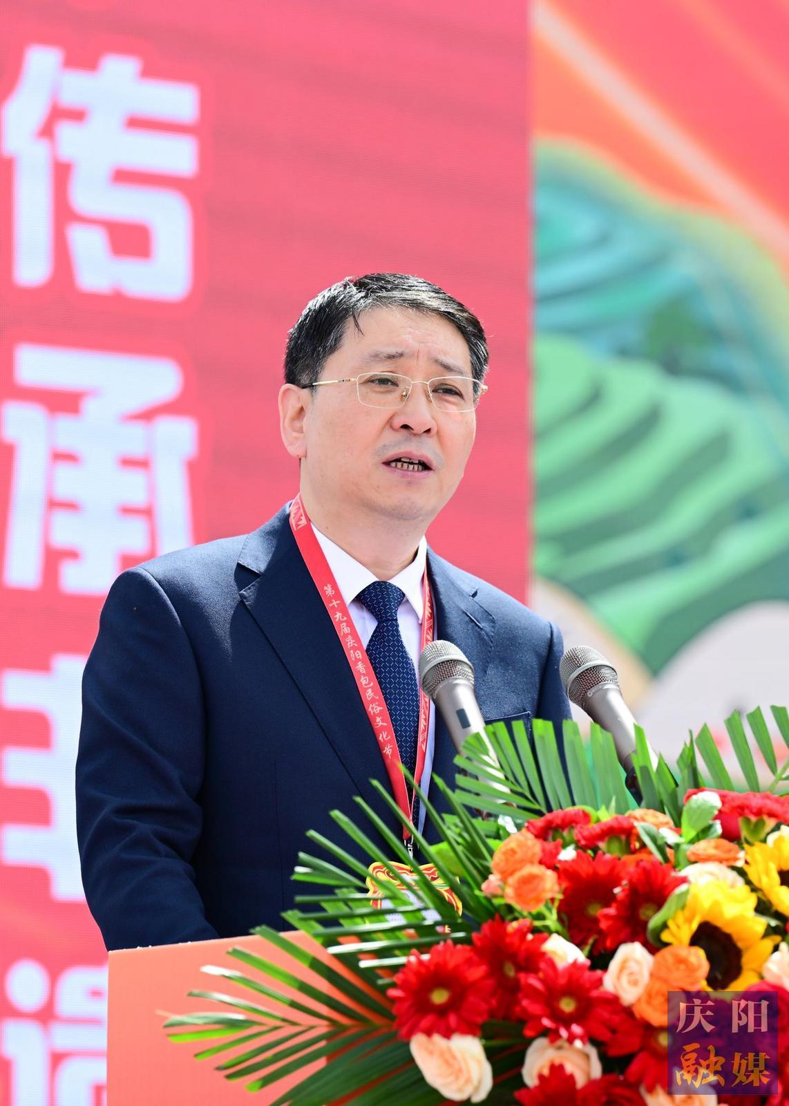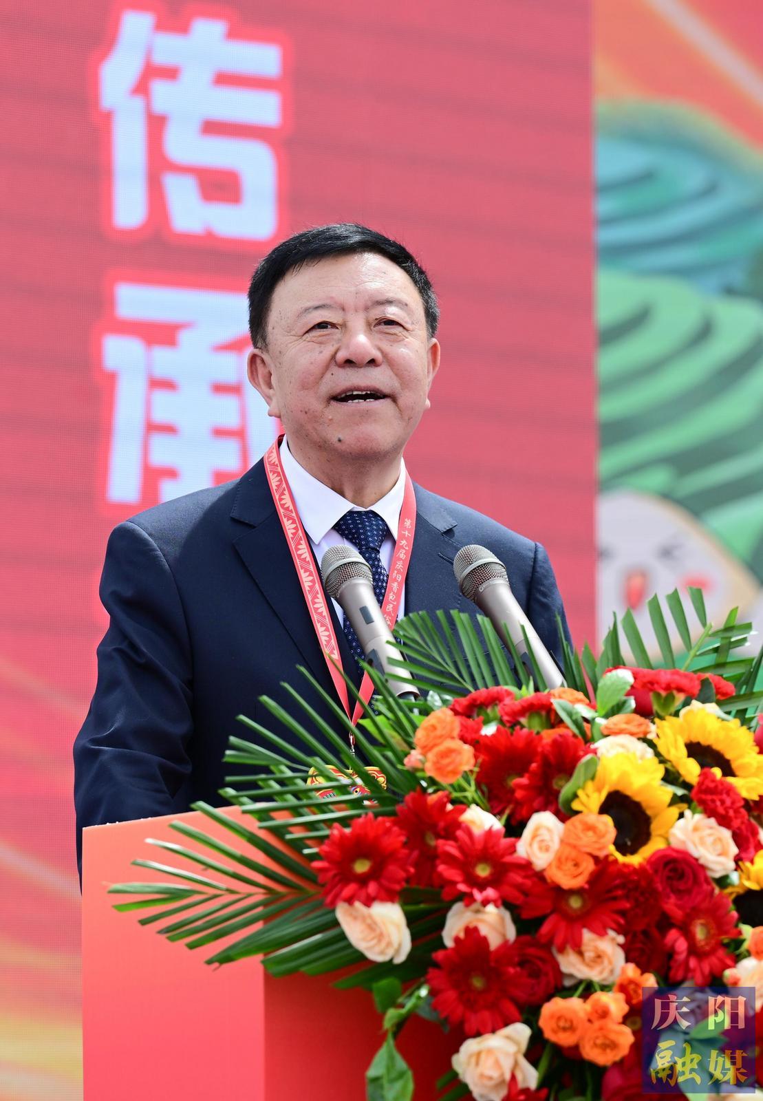 尚勛武對(duì)節(jié)會(huì)順利開幕表示祝賀,向各位來賓蒞臨表示歡迎。他說,本次節(jié)會(huì)以展演、展示、展銷相結(jié)合的方式,讓群眾近距離體味甘肅文化遺產(chǎn)的魅力,必將進(jìn)一步激發(fā)廣大群眾熱愛優(yōu)秀傳統(tǒng)文化的熱情,增強(qiáng)保護(hù)文化遺產(chǎn)的自覺性,營(yíng)造全社會(huì)關(guān)注、挖掘、保護(hù)和傳承文化遺產(chǎn)的濃厚氛圍。慶陽市成功舉辦十九屆香包民俗文化節(jié),是深入貫徹落實(shí)習(xí)近平文化思想的具體實(shí)踐,是落實(shí)中央和甘肅省有關(guān)工作要求的具體舉措,充分展現(xiàn)了地方民俗文化風(fēng)采,弘揚(yáng)了民族優(yōu)秀文化傳統(tǒng),同時(shí)為廣大群眾提供了豐富多彩的文化大餐和精神食糧,對(duì)推動(dòng)慶陽經(jīng)濟(jì)社會(huì)高質(zhì)量發(fā)展產(chǎn)生積極而深遠(yuǎn)的意義。希望慶陽市委、市政府深入貫徹落實(shí)習(xí)近平新時(shí)代中國(guó)特色社會(huì)主義思想,不斷深化改革、擴(kuò)大開放,凝聚全市干群智慧和力量,走好“‘雙輪’驅(qū)動(dòng)、‘三化’并進(jìn)、‘四建’支撐,老區(qū)高質(zhì)量發(fā)展”的路子,堅(jiān)持文化為魂、旅游為體、康養(yǎng)為用、融合發(fā)展,持續(xù)推動(dòng)文旅產(chǎn)業(yè)一體發(fā)展,全力打造“高天厚土、紅色圣地、文化慶陽”品牌形象,促進(jìn)經(jīng)濟(jì)社會(huì)高質(zhì)量發(fā)展。