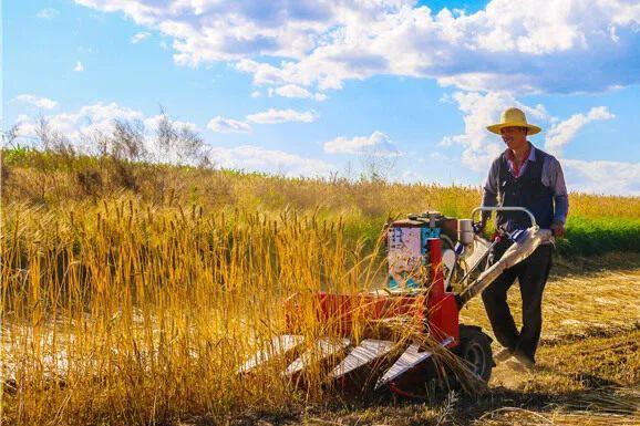 夏至親臨堡子梁,鐮刀揮舞麥茬長。