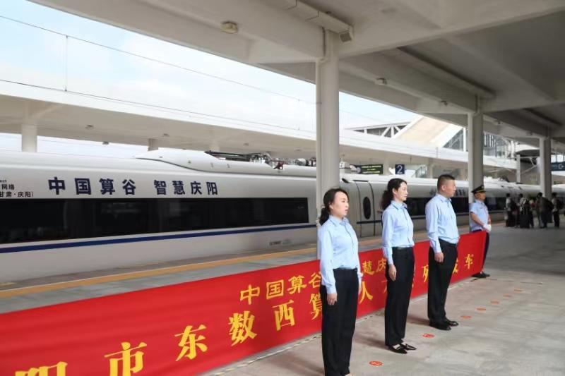 慶陽(yáng)網(wǎng)訊(慶陽(yáng)融媒記者劉萍凝 胡文韜)7月4日上午9時(shí)06分,隨著印有“中國(guó)算谷?智慧慶陽(yáng)”的G3172次列車緩緩抵達(dá)銀西高鐵慶陽(yáng)站,慶陽(yáng)市首列東數(shù)西算“人才專列”發(fā)車。