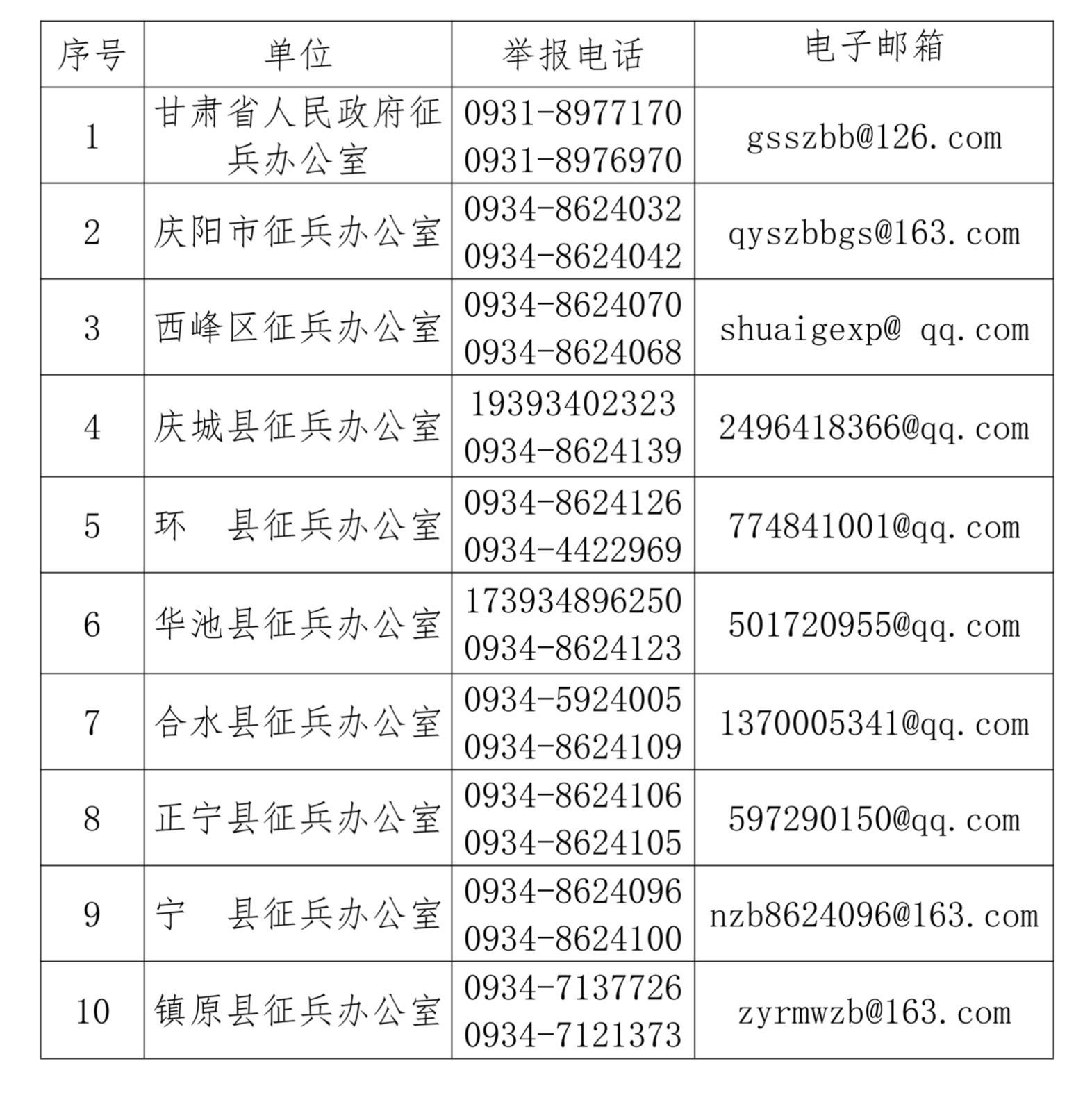1.慶陽市廉潔征兵監(jiān)督舉報(bào)電話、郵箱
